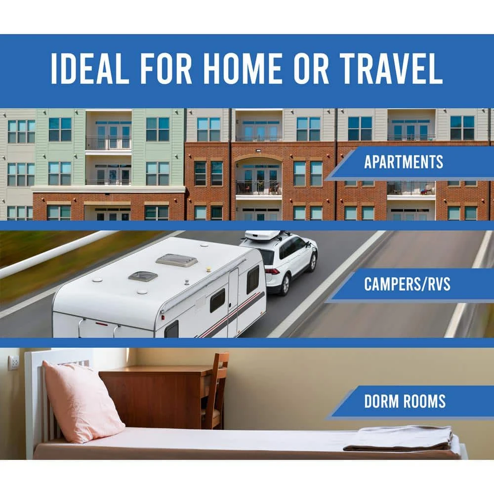 A perfect space saving solution for small living spaces, RVs, Boats, or anyplace you need big cleaning in a compact size. This powerful, easy to use, portable dishwasher holds up to 6 place settings and offers 7 powerful wash programs. It’s easy to install, has simple one-touch digital controls, and easily sits right on your countertops or a sturdy tabletop.