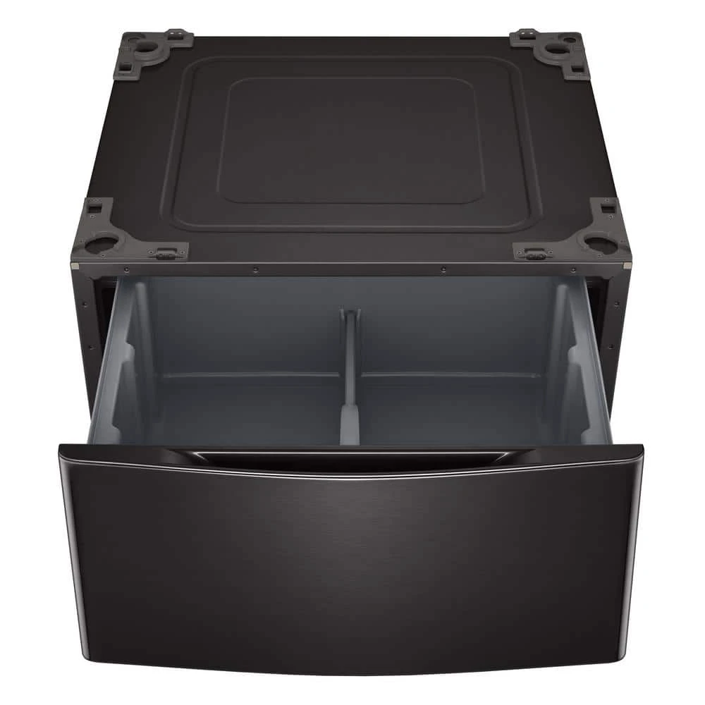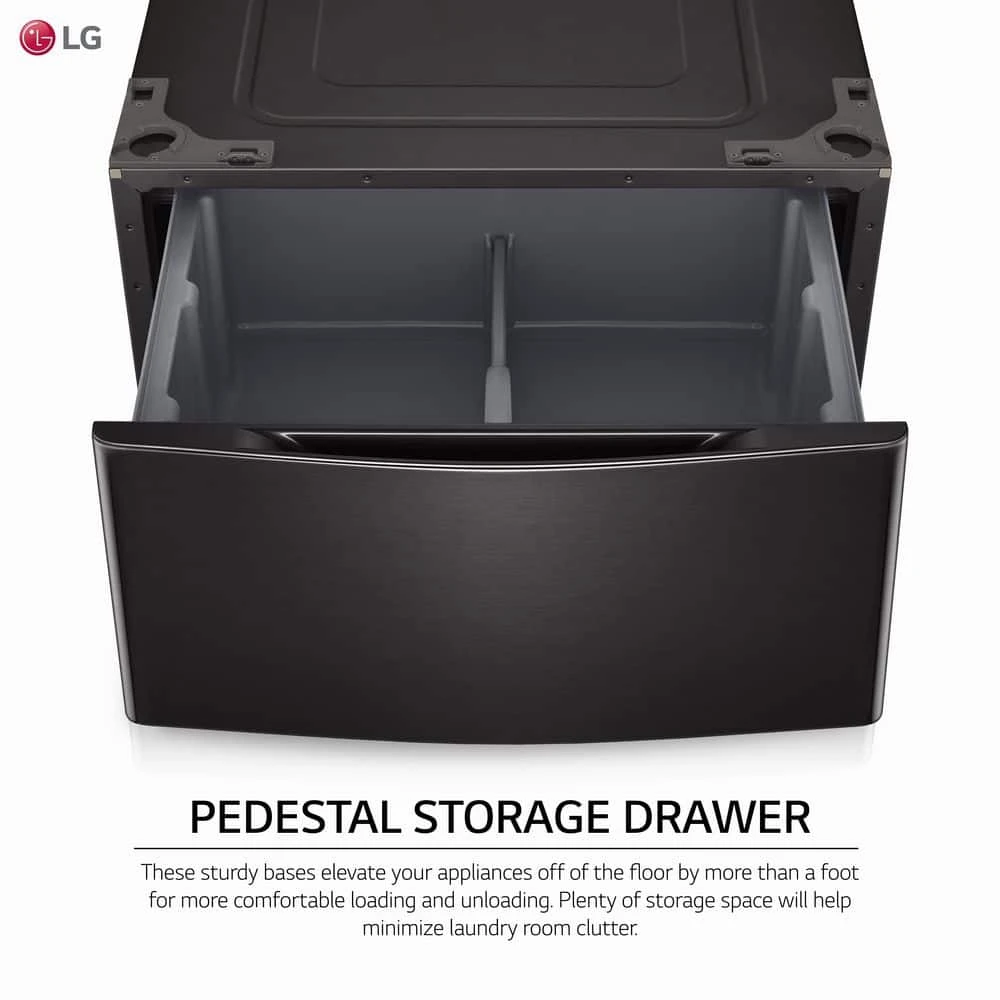The LG Laundry pedestal with storage drawer makes your appliance easy to access. The drawer holds up to 18 lb. of laundry supplies and includes a convenient removable divider for organization. Compatible with 29 in. washer or dryer.