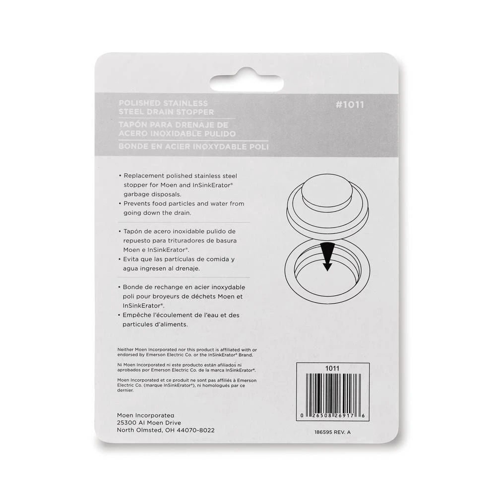 The replacement Polished Stainless Steel Drain Stopper is for use with MOEN and InSinkErator garbage disposals. Upgrade your plastic drain stopper with the polished stainless steel finish to complement your kitchen. The Polished Stainless Drain Stopper is easy to insert and remove from the sink drain.