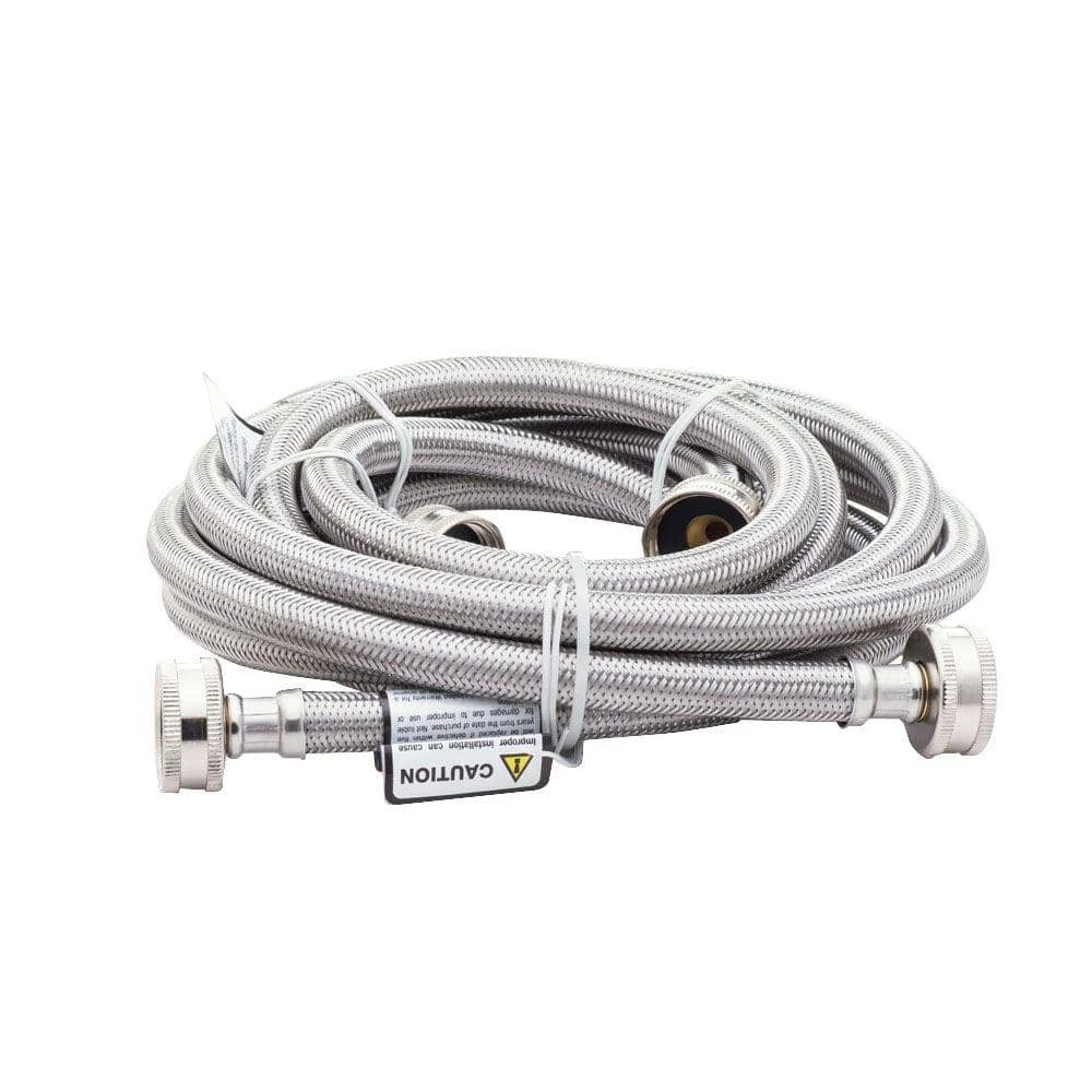 - Braided stainless steel washer hoses provide long-lasting strength and reliability