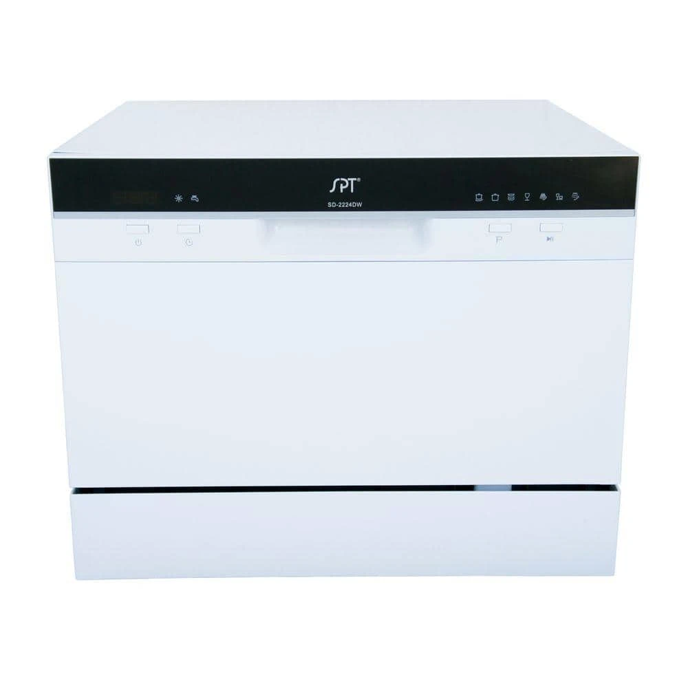 Perfect for apartments, office kitchens or any small-sized kitchens; offers full-size power in a compact design. With a height of only 17.24 in. this unit will fit between most countertop and cabinetry. Spacious cavity loads up to six standard place settings. Features automatic detergent and rinse-aid dispenser. Quick connect to most kitchen faucets eliminates the need for direct plumbing or permanent installation.