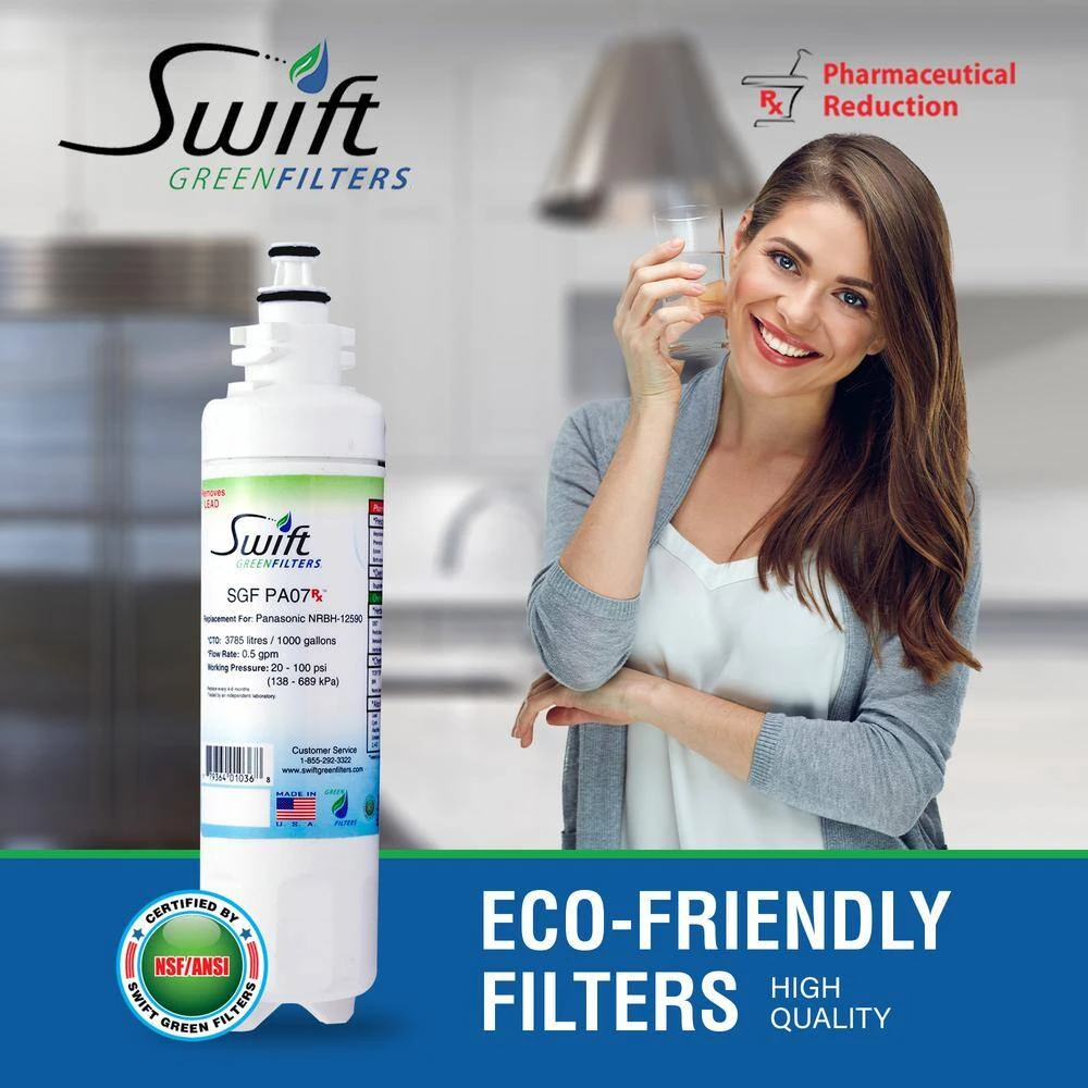 - Industry certified to meet NSF/ANSI 42, 53 or 401 standard, Swift Green Rx using advance scientific purification process reduces chemicals, including pharmaceuticals, Volatile organic compounds (VOC), Chlorine Taste and Odor (CTO), pesticides, waterborne parasites, lead, Cyst, mercury, asbestos, chlorine and other industrial chemicals