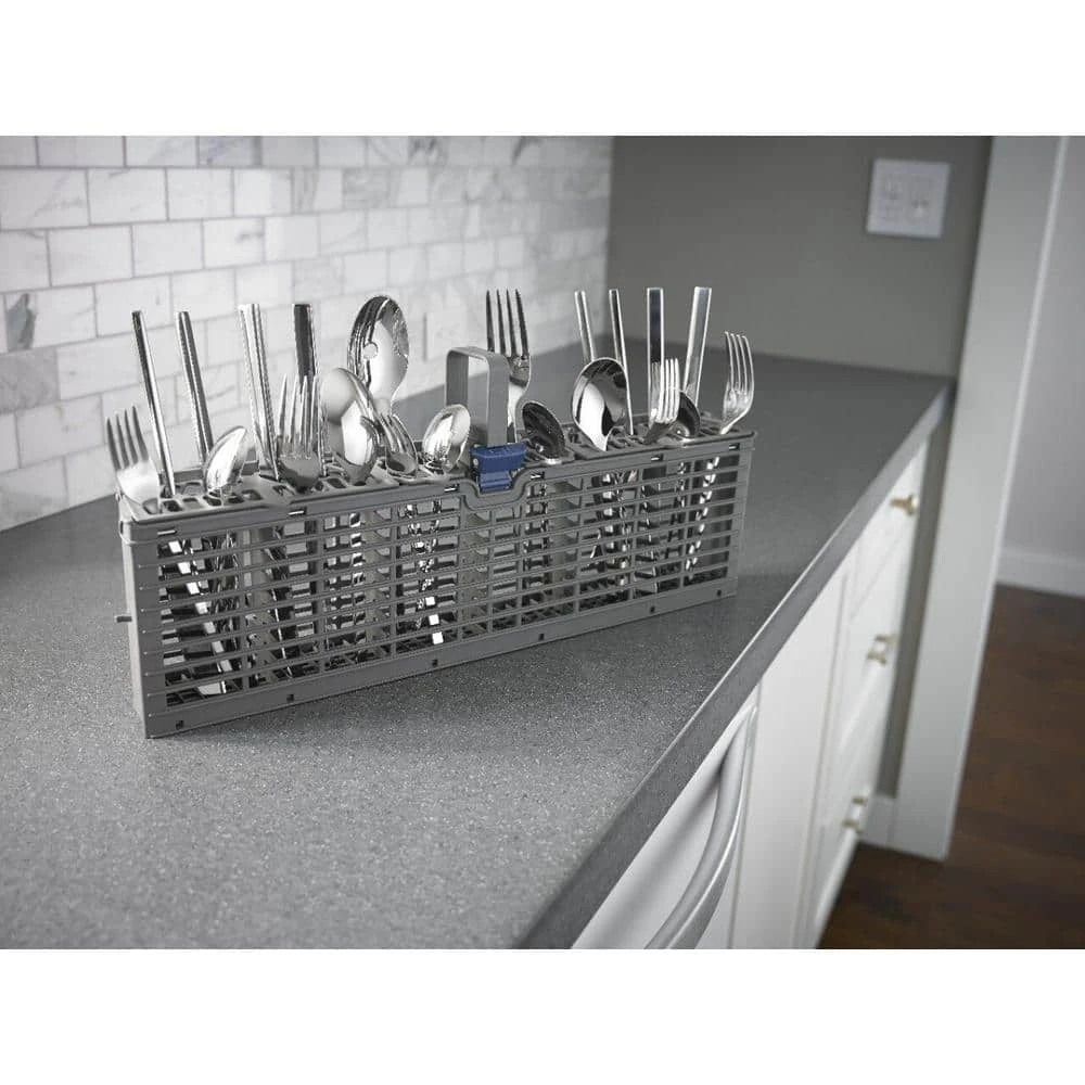 Clean dishes with a 55 dBA quiet dishwasher. Three 5″ Cup Shelves free up extra space and a Boost Cycle provides extra effort for cleaning up stubborn messes. This dishwasher includes an Extended Dry Option to elevate drying performance and a Triple Filtration Wash System that filters food particles and cleans the water between wash stages.